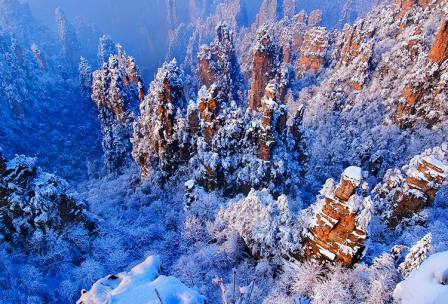 張家界三千奇峰、八百秀水,用“雄、奇、險、秀、幽”5字來概括,早已得到大眾的公認。張家界的山水,稱得上是風景山水的經典;游張家界,則成為人生的宿愿和幸事。飽覽張家界,可謂四時皆宜:春天,是大地充滿靈氣的季節(jié),張家界此時的山水,充滿著生氣,充滿著向往,它的每一座山峰,每一道水溝,都舉著搖曳多姿的花朵,是表示對游人的歡迎,更是表達一種生命的意境;夏天,是空氣膨脹欲望的季節(jié),張家界此時的山水,充滿著遐想,充滿著誘惑,它的一草一木,一枝一葉,都滴瀉著生命的翠綠,裝飾著每一座山峰,蘊含著人生的幻想和追求;秋天,是星月喜慶豐收的季節(jié),張家界此時的山水,一樣地走向深厚,一樣地寫滿沉穩(wěn),它的山山嶺嶺,它的溝溝壑壑,在翠綠的底色中亮出火一樣的紅葉,抒寫著熱情,歌吟著成熟與奔放;冬天,是風花雪月般詩意的季節(jié),張家界此時的山水,冷峻中透著溫情,蒼茫里飽含著魄力,它的一座座石峰,它的一棵棵巖松,都是一個個冰清玉潔的世界,它們都玉樹臨風般燃燒著,引發(fā)著游客的激情,而那些冰雪覆蓋的小溪,流水在動情地吟唱,就像有情人心中的歌吟,最易撩動愛人的衷腸。我愛張家界四季的景色,但我更愛張家界的冬天,我愛在冬天里與張家界的山水對話,我愛在冬天里到張家界的山水間去暢游,去作一種思想的飛翔! 張家界的冬天并不寒冷,這主要是因為四周多高山,這里的冬季多為晴朗天氣,故區域小氣候較為溫暖,暢游張家界無須冒嚴寒之苦,又可避開歷酷暑之難。即使是雨雪天氣,因為景區是一個高出的整體平臺,小地形則是一塊盆地,所有的景觀就好比一個放大的盆景,所以在游歷觀賞的行程中,并無寒氣逼人、冷酷加身的感覺。一旦遇上陰雨天氣,景區因海拔較高,山地氣候又特別明顯,放眼望去,枝枝葉葉便都成了水晶般的世界,精靈奇巧的霧凇千姿百態(tài),笨拙憨厚的灌木清純天成。若是有雪降臨,不管大小,山上立即便會是一個白雪皚皚的世界,恰似翡翠盤中堆砌著白玉,那些巖壁上的枯枝古樹,此時又煥發(fā)青春,讓人不由得想起兩句古詩:“春來苔作葉,冬至雪為花。”我曾陪《羊城晚報》的一位朋友冬游張家界,她興致極高地滿山里跑,她說:“此山此景,人生頭一回遭遇,可望而不可求,遺憾的是沒有看到雪境里的張家界。”真是老天作美。第二天,我們在山上走著走著,天空便飄起了雪花,頃刻之間,便是一個雪花飛舞的世界,大地上石峰上樹上身上的雪花,就像火苗一樣點燃了朋友的激情,她情不自禁地面對著山野吟哦起來——親切而新鮮的雪花,落下來,在夢幻深處,在心靈深處,就像飄落的雪白的火焰,溫暖我人生的境界點燃我生命的激情……雪花落下來,落滿大地、石峰和樹冠豐腴著山峰、溝壑和想象為詩意和行程增加了厚度,雪清新,溫暖,純潔,冷冽它是自然的語言,火辣辣的語氣中帶著熱情,還有看不見面的堅硬和銳利…… 作為一個南方的朋友,見到如此美妙的雪的世界,她的激動和驚喜,完全是我意料中的事;而讓我驚奇的是從不作詩的她,竟然意隨興致的吟唱出如此語意雙佳的詩作來。 雪中游張家界,你無需為安危著想,景區的工作人員,無論何時何地,都是游客的保護神。在我的記憶中,深深地記得2000年正月初一的那天,我與攝影界的朋友游張家界,每到一處,各種接待工作都井然有序,清路工人硬是在一尺余厚的積雪上,清出了通往每一個景區景點的道路,每一處易出事故的地方,都有工作人員守護。在天子山頂,我們遇到一群臺灣游客,他們高興地指著冰天雪地的景區景點說:“張家界山美水美人更美,張家界的雪景則是美上加美,每一座石峰都冰清玉潔,每一棵樹都玉樹臨風,真是一個美妙的雪世界啊!” 張家界的森林覆蓋率達99.7%以上,植物科目種類比整個歐洲大地還多。因此,冬游張家界,滿眼里仍然是綠色的世界,這就是它與北方景觀的區別。即使是冰天雪地,那臨風玉樹,那挺立的石峰,透過冰雪,仍然會展現出綠色,就像一個翡翠的世界。置身于這樣的景致里,使你的感覺不寒不躁,如早春二月,心如春芽。這時,你心隨景移,興隨景起,你會由衷地感嘆:“這世界多么美妙,真是個賞雪景的勝地。”? 冬天去張家界賞雪景,游客不用自己為交通食宿多操心。如今去張家界,公路、鐵路、航路三位一體,十分方便,市內去景區也已修成了高等級公路,返往暢通無阻。旅游通行是景區旅游,市內住宿,各類檔次的賓館任由選擇。盡管景區山高溝深,路陡程長,但游客無需為勞累擔憂,景區內已建成兩條上山索道和一條上山升降梯,上黃石寨、天子山、袁家界等核心景區,只是一瞬間的事情。即使在山上走累了,隨處可以叫一架滑竿,轎夫都是些訓練有素的精壯青年,他們可以抬著你慢悠悠地一邊瀏覽著雪中的景致,還會一邊為你講些民俗或是一些山中的故事。他們會為你噓寒問暖,寧肯自己多吃些苦,多受些累,他們也會做到讓游客舒心滿意。這時,你還不心曠神怡么?你渾身會涌起一股股溫暖的感覺來。 朋友,下雪時,到張家界觀雪去,那是一場雪白的火焰,將會點燃你生命的激情和幻想,那些個性的石頭和倔強的樹,那里的民俗風情和鄉民情操,將會成為你生命中人性修養的參照。